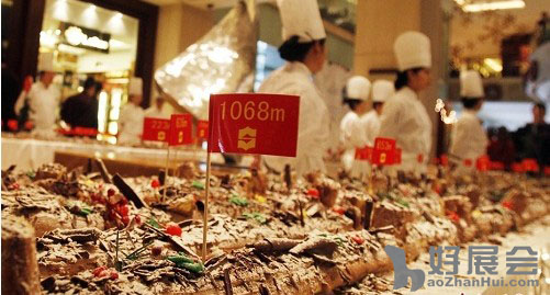 圣誕節(jié)即將來臨,各地的準備工作也火熱準備。近日,浦東香格里拉大酒店做出全長為1068米的樹根蛋糕,創(chuàng)造了新的吉尼斯紀錄。樹根蛋糕在浦東香格里拉大酒店一樓大堂內從紫金樓到浦江樓再回到紫金樓一共繞了5圈,共用去1045公斤全麥面粉、904只有機雞蛋、633公斤新鮮奶油、401公斤巧克力、379公斤糖粉、203公斤蔗糖、106公斤杏仁膏、37公斤櫻桃、34公斤檸檬和同樣分量的大溪地香草。