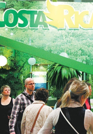 3月11日,人們在哥斯達黎加特色生態(tài)展位前參觀咨詢。當日,為期5天的第46屆柏林國際旅游交易會落幕。根據(jù)德國聯(lián)邦旅游經(jīng)濟協(xié)會初步統(tǒng)計,會上簽署的意向協(xié)議金額超過60億歐元(約78.6億美元)。