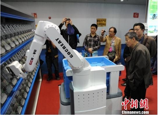 重慶電科院工程師歐熙說(shuō),這個(gè)靈活自如的機(jī)器人,是重慶市電力公司電力科學(xué)研究院電能表柔性自動(dòng)檢定系統(tǒng)的一部分。其采用仿生學(xué)原理設(shè)計(jì),可實(shí)現(xiàn)電能表檢測(cè)過(guò)程中周轉(zhuǎn)箱拆垛、取表、定位、上表、卸表等操作全過(guò)程自動(dòng)化,并運(yùn)用機(jī)器視覺(jué)技術(shù)實(shí)現(xiàn)了機(jī)器人運(yùn)動(dòng)路徑自動(dòng)示教,機(jī)械手精確定位和產(chǎn)品外觀識(shí)別等功能,目前已在電科院計(jì)量檢定車間投入使用。