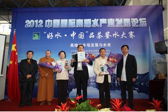 2012年4月8日上午,由中國(guó)民族衛(wèi)生協(xié)會(huì)健康飲水專(zhuān)業(yè)委員會(huì)舉辦的“好水·中國(guó)”品茶鑒水大賽決賽的三項(xiàng)大獎(jiǎng)“冰魂獎(jiǎng)”、“命河獎(jiǎng)”、“梅花雪獎(jiǎng)”已見(jiàn)分曉,三項(xiàng)大獎(jiǎng)最終“花落九家”。
