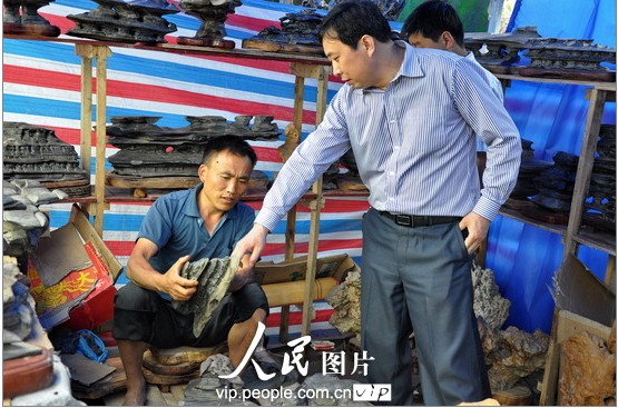 2012年5月6日,由中國文聯(lián)、中國觀賞石協(xié)會與安徽省人民政府共同主辦的首屆中國靈璧國際奇石博覽會在安徽省靈璧縣開幕。此間,共設置奇石展銷點6個,展銷攤位1000個。八方石客云集于此,奇石是五顏六色、奇形怪狀,石客是各懷心儀,或漫天要價,或闊斧砍價,但個個喜形于色。(來源:人民網(wǎng)-節(jié)慶會展頻道)