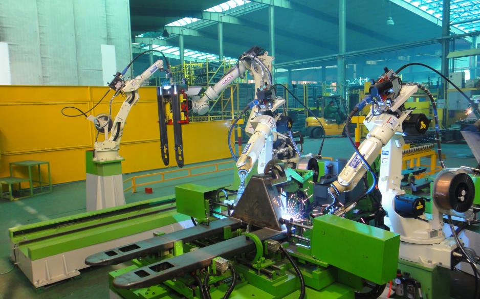 由寧波全友佳和機器人科技有限公司帶來的“搬運車車架機器人焊接搬運柔性生產(chǎn)線”