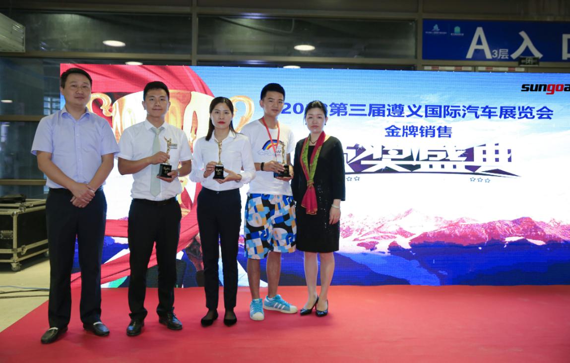 經過20天的激烈角逐,首屆遵義國際車展“金牌銷代”冠、亞、季軍已經誕生。來自上汽通用五菱遵義良駒汽車貿易集團有限公司銷售代表蔣斌鑫以56140票摘得冠軍殊榮;來自遵義寶源汽車銷售服務有限公司寶馬品牌銷售代表馮小利以52513票獲得本次活動亞軍;遵義眾鑫匯汽車銷售服務有限公司斯柯達品牌銷售代表吳可松以27030票獲得季軍。今天下午2點,金牌銷售代表頒獎盛典準時在B館2層尚格大舞臺舉行,尚格會展股份有限公司總經理任麗紅女士、貴陽尚格會展服務有限公司總經理李楊先生分別為獲獎的“金牌銷代”們頒獎,現(xiàn)場觀眾們共同見證了這一榮耀時刻。