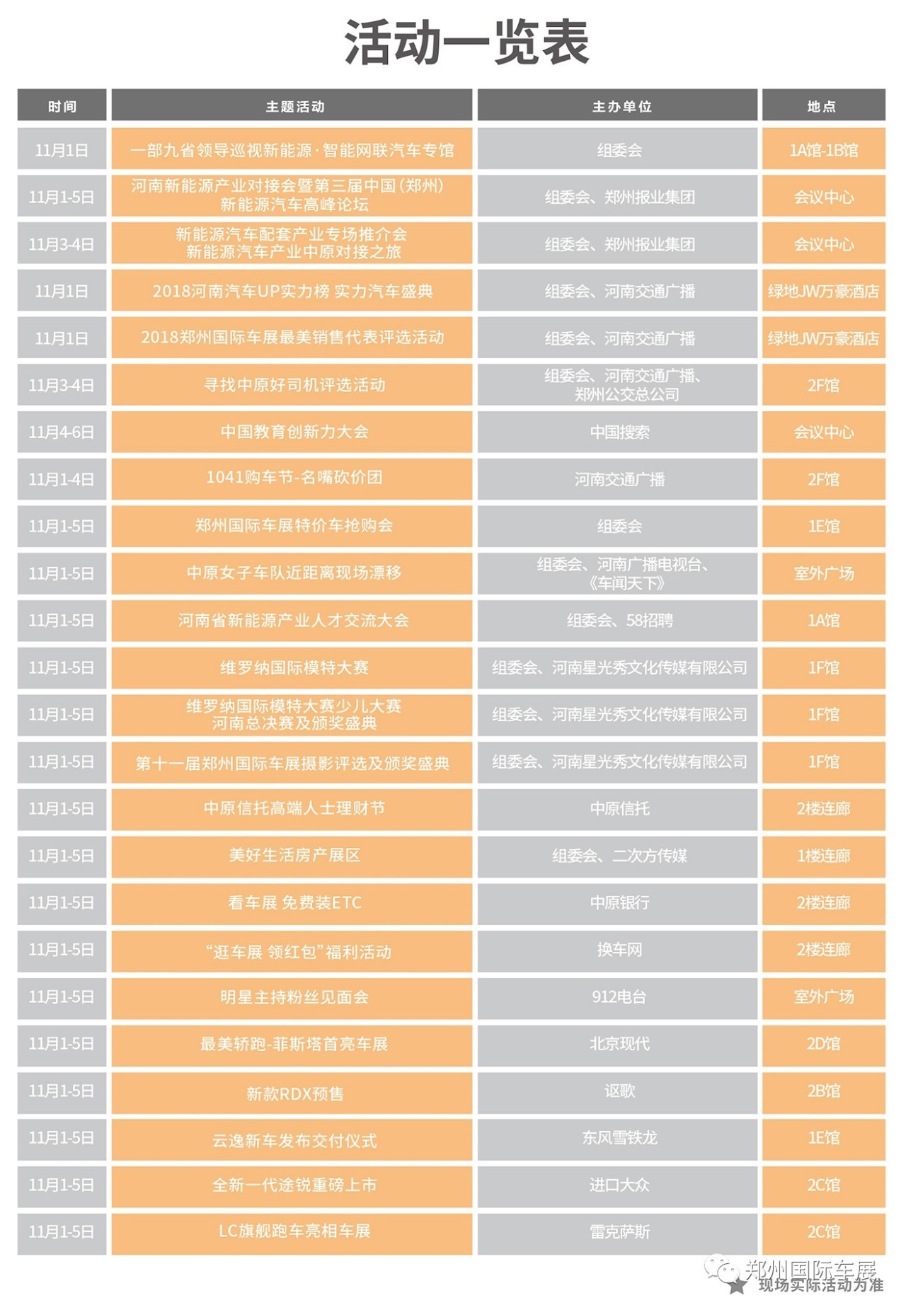 溫馨提醒:11月3日(周六),與車展同期舉辦的2018鄭州國際馬拉松賽事,將對商務(wù)內(nèi)環(huán)路部分路段臨時封閉,請?zhí)崆耙?guī)劃觀展時間,開車觀展的可停在商務(wù)外環(huán)各地下停車場,小展建議最好搭乘公共交通方便出行。