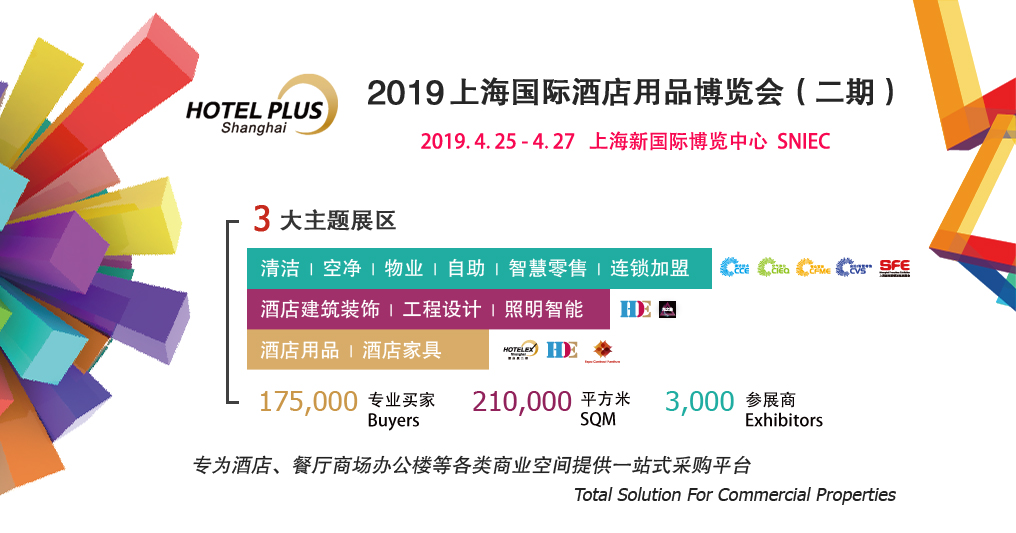 2019新國際博覽中心再度全館齊放,打通行業(yè)壁壘,共享210,000平方米展出面積,175,000觀眾資源,近3,000優(yōu)質(zhì)海內(nèi)外廠商。同期展會貫穿酒店工程、清潔產(chǎn)品、物業(yè)保潔、建筑裝飾、商業(yè)智能化設備等行業(yè),定位于中高端產(chǎn)品,為全球買家提供全系列解決方案和信息交流與分享的機會,為酒店、餐廳、商場辦公樓等各類商業(yè)空間提供服務及整體解決方案的一站式采購平臺。