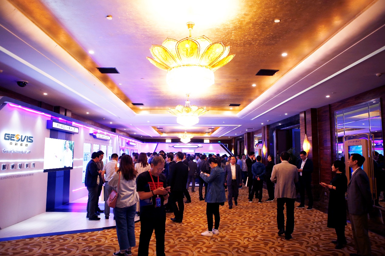 參會(huì)院士、專家、領(lǐng)導(dǎo)和嘉賓駐足觀看GEOVIS數(shù)字地球產(chǎn)品相關(guān)介紹