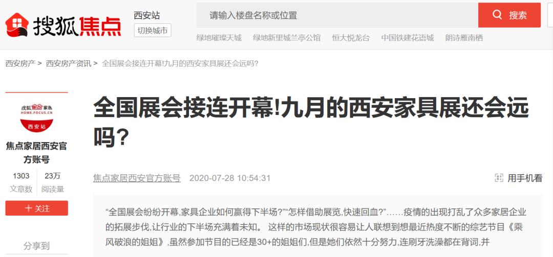 每年展會期間,《中國家具報道》、《深圳家具報》、《雅居》、《家居世界》、《華東家具》等60+專業(yè)媒體都會參與其中。另一方面,展會借由本地媒體《陜西日報》、交通916、公交廣告、LED車體廣告和電視臺等開展了廣泛密集式的宣傳報道,并還與百度、360搜索推廣、騰訊、頭條、行業(yè)庫短信/郵件通知等新媒體及數(shù)據(jù)渠道建立了緊密合作。