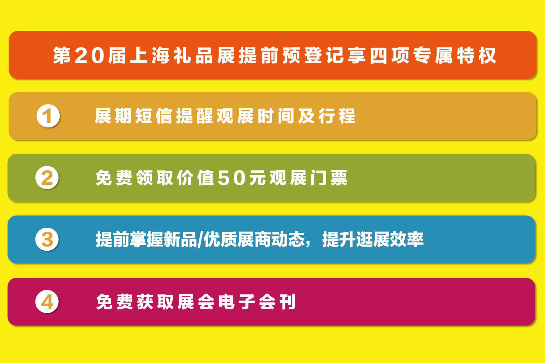 精彩的禮物不甚枚舉,節(jié)日禮品以時尚、創(chuàng)新、健康趨勢在禮品市場上持續(xù)走俏。如果您也想要抓住禮物經(jīng)濟商機,完成精準(zhǔn)采購,一定要來2021第20屆華禮展,12月10-12日相約在上海新國際博覽中心。關(guān)注“上海國際禮品展”公眾號在線預(yù)登記,免費領(lǐng)取價值50元參觀門票,一起開啟一場年終的節(jié)日禮品采購狂歡盛宴吧!