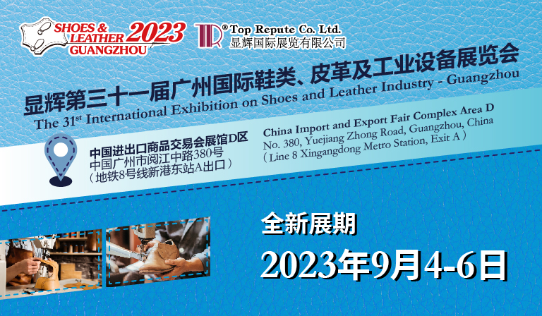 「顯輝第三十一屆廣州國際鞋類、皮革及工業(yè)設(shè)備展覽會」煥新啟航,將于2023年9月4-6日在廣交會展館D區(qū)(18.1 -20.1)舉辦,誠邀您在全新的展期再聚全新的展館,共襄顯輝廣州盛會!